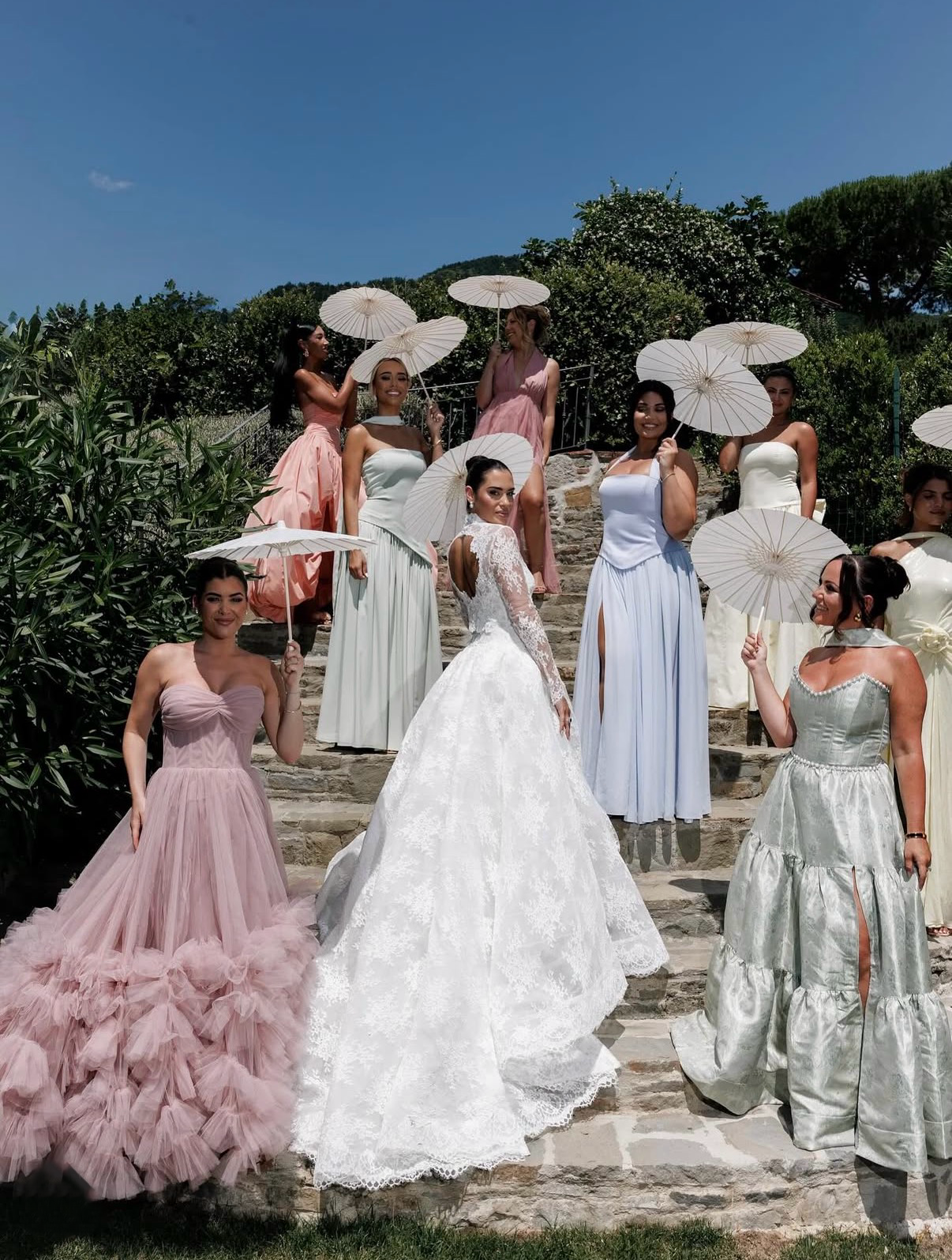 • Elegant silhouettes, whether fluid or more structured, including layered gowns or softly voluminous designs, always with a refined finish.